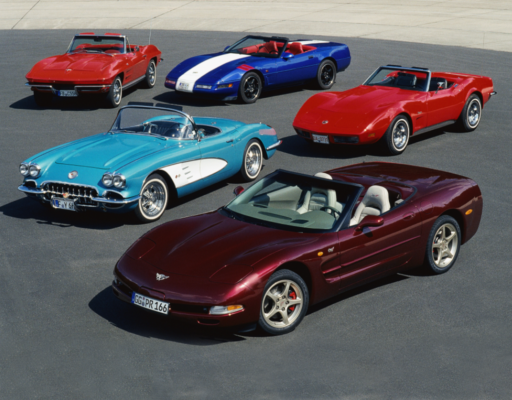 - C1 (1953-1962): O primeiro Corvette, ainda modesto, foi se refinando ao longo dos anos. O modelo de 1955 trouxe a opção do motor V8, que se tornaria uma assinatura do Corvette. O design também evoluiu, com a icônica grade dentada de 1958.